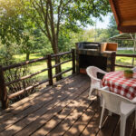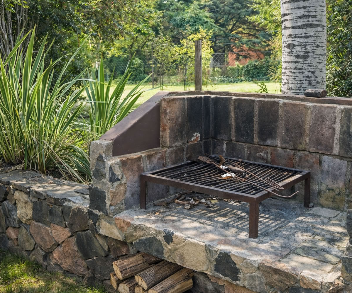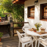 Terraza exterior con parrilla y sector para mesa.