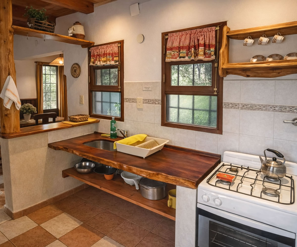 Cuenta con cocina comedor con horno, anafe, microondas, heladera, vajilla básica y baño.
